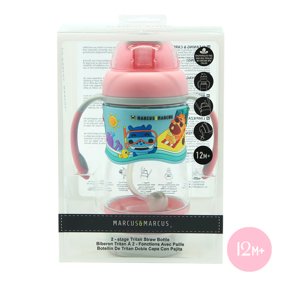 Bình uống nước có ống hút cho bé Tritan 2-Stage Marcus & Marcus, từ 12 tháng – Hồng